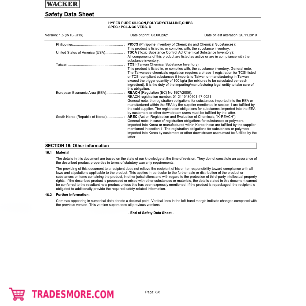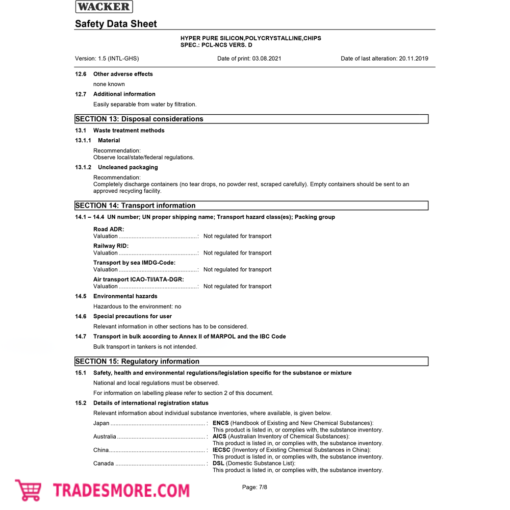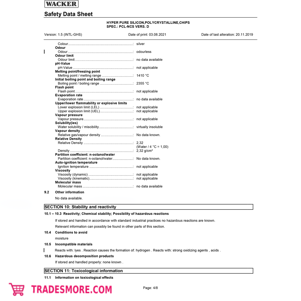 Polysilicon HYPER PURE SILICON, POLYCRYSTALLINE, CHIPS