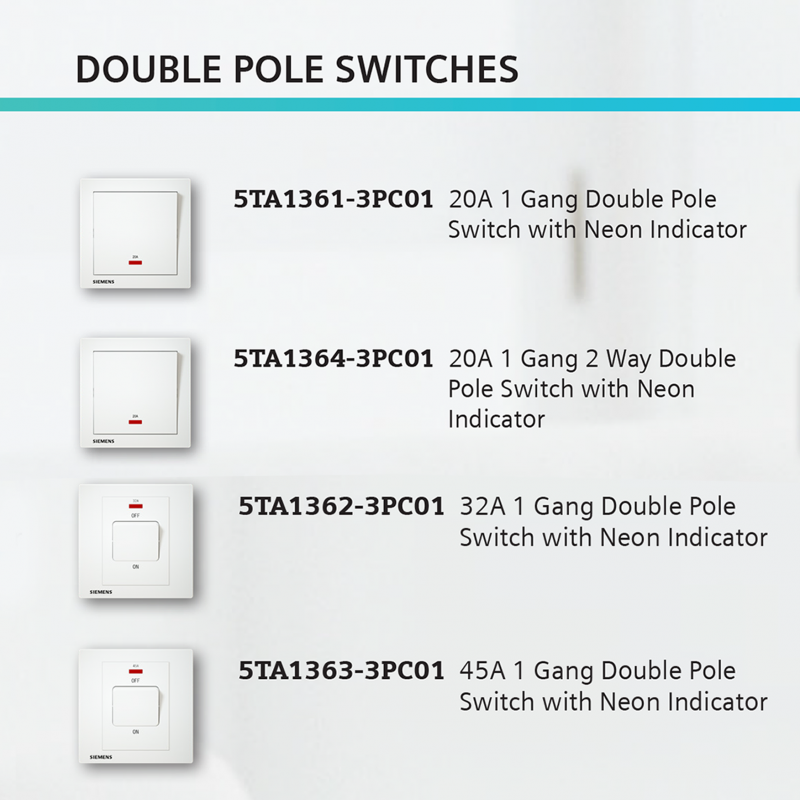 Siemens DELTA® Relfa Double Pole Switches